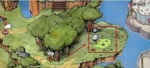 接着,在这里和茶杯头老爷爷对话,靠近它按下A键(跳跃键);