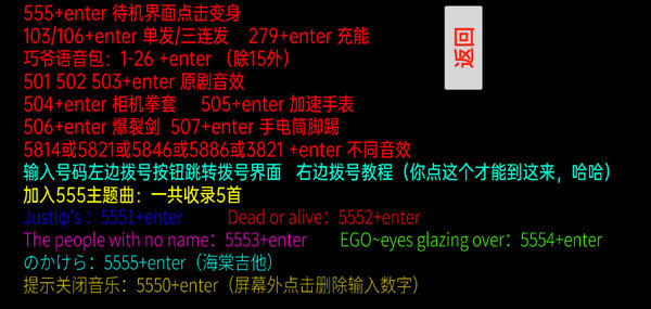别具一格的按键号码变身模式,务必留意别输错啦!否则变身无法成功哦。