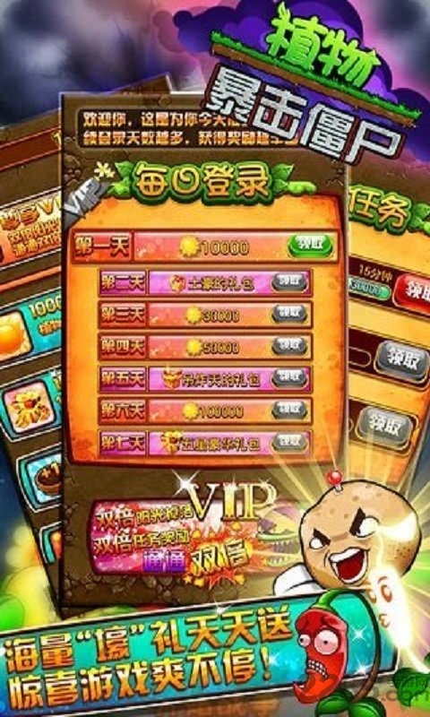 在植物暴击僵尸的世界里,你将面对一波波来势汹汹的僵尸大军。这些邪恶的僵尸总是妄图摧毁我们美丽的植物家园,而你需要组建史上最强的超萌植物战队来抵御入侵。游戏提供了丰富多样的挑战模式,从日常任务到特殊活动,每一场战斗都能帮助你快速成长。特别值得一提的是,游戏还设有史诗级的僵尸BOSS战,让你体验酣畅淋漓的超强对决!每日登录更有丰厚奖励等你领取,助你更快组建梦之队!