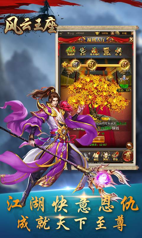 风云王座版是一款以经典武侠小说为背景的侠义江湖RPG手游,游戏不仅获得了原版小说的正版授权,更在细节上精益求精,完美还原了原著中的经典场景、人物形象和精彩剧情。在这里,你可以收集各式各样的功法秘籍,打造专属神兵利器,驯服威风凛凛的坐骑,自由搭配技能组合,体验快意恩仇的江湖人生!