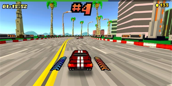游戏最吸引人的地方在于其独特的3D像素风格与精准的驾驶操控。玩家可以在赛道上收集金币和道具,这些不仅能提升赛车的速度,还能用来改装爱车,打造属于自己的专属座驾。每辆赛车都拥有独特的性能参数,玩家需要根据赛道特点选择最适合的车辆。此外,游戏还加入了刺激的对抗元素,玩家可以使用导弹等武器干扰对手,让比赛充满变数和乐趣。