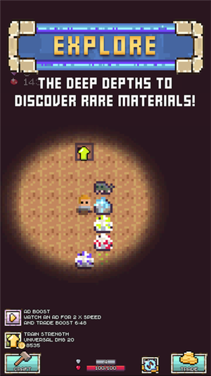 探索地下:不断深入地下,发现稀有矿石和宝藏,提升矿场等级。记得带上足够的补给品,因为越往深处挖掘,遇到的挑战也会越大。