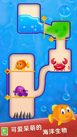 随着关卡的逐渐解锁,鱼儿被困得越来越深,只有掌握更多的技巧才能轻松救出鱼儿,否则很可能会出现连续失败的情况。游戏后期还会引入多目标救援任务,需要玩家同时解救多条小鱼儿。