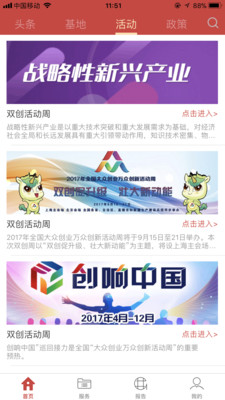 最新升级的创新创业客户端在原有基础上进行了全面优化,现提供六大核心功能模块: