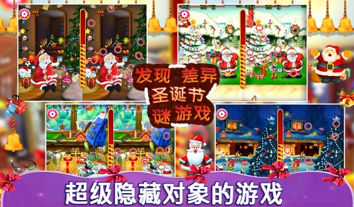 圣诞节的欢乐氛围在这款游戏中得到了完美呈现!你是否注意到圣诞老人的帽子颜色与往常不同?鲁道夫的红鼻子为何突然消失?结霜的雪人似乎少了一些装饰,你能发现吗?甚至连圣诞老人雪橇上的驯鹿也神秘失踪了!这些有趣的细节差异隐藏在精心设计的关卡中,等待你去探索。游戏以轻松愉快的圣诞主题为背景,为玩家带来一场视觉与脑力的双重挑战。无论是孩子还是成年人,都能在游戏中找到乐趣,同时提升观察力和专注力。