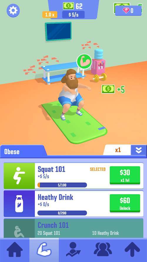 健身器材需要玩家自行购买和升级,这种设定增加了游戏的策略性。玩家需要合理分配资源,优先购买最需要的装备。随着训练水平的提高,更高级的器材会逐步解锁,保持游戏的新鲜感和挑战性。