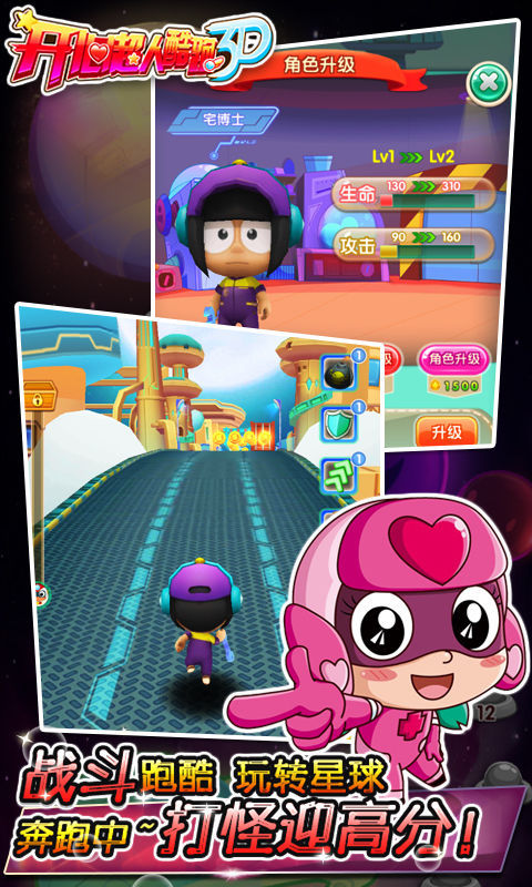 《开心超人酷跑3D九游版》是一款专为手机端打造的3D动作跑酷游戏,将刺激的竞速玩法与角色扮演完美结合。在这款游戏中,玩家可以自由选择扮演开心超人、甜心超人、花心超人等经典角色,在充满挑战的赛道上展开激烈角逐。游戏不仅考验玩家的反应速度,还需要巧妙应对来自大大怪和怪兽们的各种干扰,在保持高速前进的同时灵活躲避障碍,体验真正的超人竞速快感!