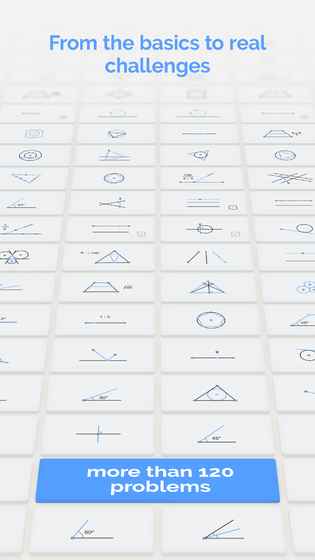 如果你不是一个数学天才,也完全不用担心。游戏会从最基础的几何知识开始,通过详细的教程引导你完成简单的挑战。随着你对几何构造的掌握程度提升,游戏会逐步引入更复杂、更具挑战性的题目,比如内切圆、外接圆、正多边形构造等。游戏共包含120个独特的关卡,每个关卡都经过精心设计,难度循序渐进,让你在挑战中不断进步。