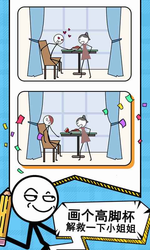 这款游戏将全面测试你的想象力和创造力,同时还能在不知不觉中提升你的绘画技巧。游戏操作极其简单,只需要一根手指就能轻松完成所有绘画操作。游戏包含了大量充满创意的动画场景,每个场景都融入了标志性的火柴人风格,玩法既新颖又有趣,节奏明快让人欲罢不能。