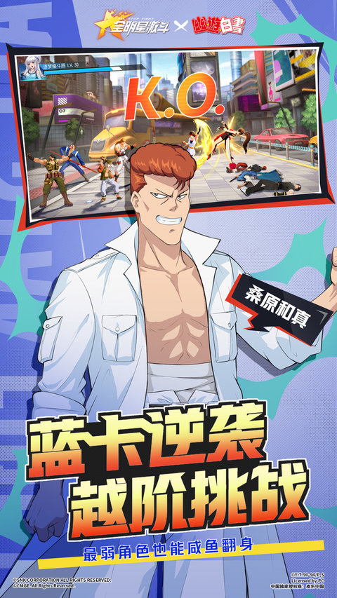 全明星激斗手游app下载是一款令人热血沸腾的拳皇题材手机格斗游戏。作为经典格斗游戏《拳皇》的正版授权手游,它不仅完美复刻了街机时代的战斗精髓,更通过现代技术为玩家带来前所未有的格斗体验。这款游戏将唤醒无数玩家的童年回忆,让您随时随地都能在手机上感受拳拳到肉的快感。游戏收录了历代拳皇系列中的经典角色,每个角色都经过精心还原,并加入了全新的技能特效,让战斗场面更加震撼。无论您是格斗游戏老手还是新手,都能在这里找到属于自己的战斗乐趣。