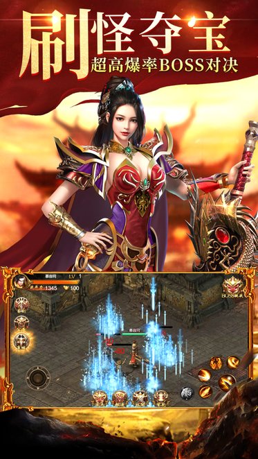 【端游重现,致敬经典】完美还原端游经典玩法,支持万人同屏PK,重现当年沙巴克攻城的壮观场面。每周定时开放大型团战活动,让玩家体验最纯粹的传奇战斗。