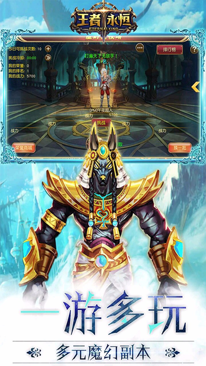 《王者永恒》是一款融合策略、竞技与角色扮演元素的多人在线游戏,为玩家打造了一个充满挑战与机遇的奇幻世界。游戏以恢弘的史诗级世界观为背景,玩家将化身为各具特色的英雄角色,通过精妙的团队配合与战术策略,在激烈的战场中与对手展开智慧与勇气的较量。游戏采用次世代引擎技术,呈现出令人惊叹的视觉盛宴,流畅的操作手感和丰富的剧情内容相得益彰。无论是追求刺激的PVP竞技场,还是探索未知的PVE副本,亦或是沉浸于跌宕起伏的主线剧情,《王者永恒》都能满足不同类型玩家的需求,带来持久的新鲜感和成就感。