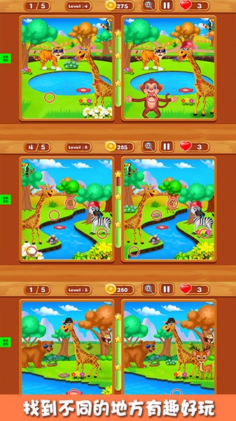 开心找找茬最新版是一款专为3-8岁儿童打造的益智类手机游戏。游戏采用明亮活泼的卡通画风,所有角色和场景都经过专业儿童心理学家的设计,确保符合小朋友的审美偏好。游戏包含20多个主题系列,每个系列都配有生动的音效和互动元素,比如点击小动物会发出可爱的叫声。开发团队特别注重游戏的教育价值,在找茬过程中会融入简单的数字和形状认知,让孩子在玩耍中学习。游戏还设有家长监控系统,可以查看孩子的游戏进度和学习成果。