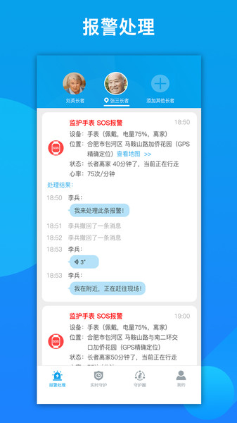 来邦养老具备强大的报警功能,能够及时接收长者智能手表的自动报警和手动报警信息。在报警发生时,系统会同步显示长者的心率、血压、血氧饱和度等关键健康数据以及当前位置,确保监护人能够第一时间掌握紧急情况。此外,软件支持多监护人协作,所有守护人都可以通过文字或语音对每条报警信息进行交流讨论,实现高效协同监护。