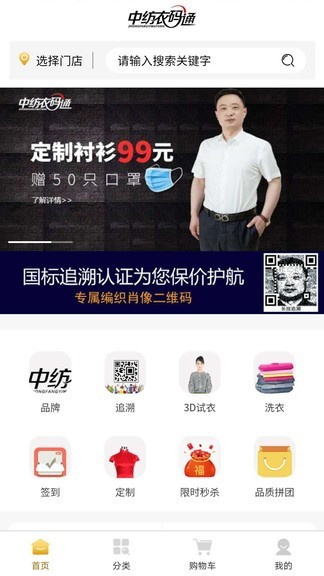 3、中纺衣码通是一款专业的衣服定制服务平台,在这里可以帮助用户随时定制专属衣服,所有的衣服都可以进行源头溯源,了解你的衣服品质和详细信息,当然也可以在线预览商品进行加购,支持用户在线3D试衣服,除此之外,还可以进行洗衣预约,使用方法简单