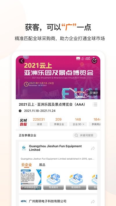 云展动力平台官方版是一款融合前沿数字技术与实体经济的创新平台,通过大数据分析、多媒体互动、实景三维建模等核心技术,为企业提供全方位的数字化转型解决方案。平台不仅实现了全球贸易的无缝对接,更通过精准的数据营销和智能化服务,帮助企业在数字经济时代抢占先机。无论是线上展览、远程会议还是产品展示,云展动力都能提供专业高效的支持,让企业突破地域限制,轻松拓展全球市场。