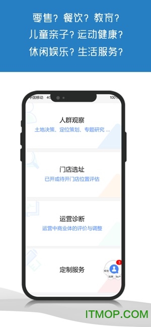 3、商用智能是一个功能强悍的大数据办公服务软件!这款软件可以被应用在人群调研观察、定位研策、商业项目运营、学术研究等多个方面,你可以利 用这款软件获得精准的数据分析和市场考察结果,无论是门店选址还是项目策划,相信数据类工作者们在工作中一定有用得到这款app的地方,赶快来尝试一下吧