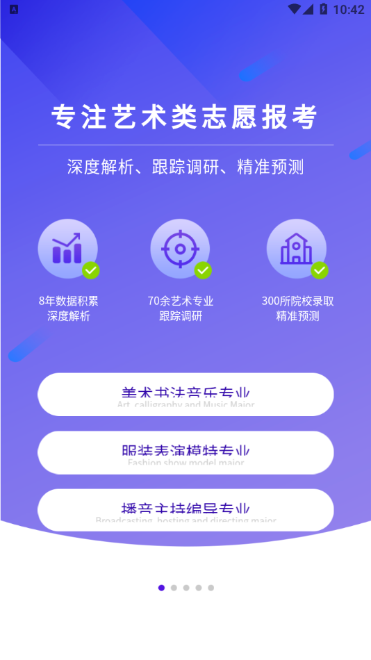 艺愿无忧高考志愿填报技巧官网版是一款基于大数据和人工智能技术的高考志愿填报辅助工具,致力于为考生提供科学、高效的志愿填报解决方案。软件收录了全国各大院校的历年录取分数线、专业排名、就业前景等关键数据,并结合考生的分数、兴趣和职业规划,智能生成个性化的志愿填报方案。用户可以通过简单的操作,快速筛选出适合自己的院校和专业,并参考系统提供的录取概率分析,优化志愿排序。此外,艺愿无忧还提供志愿填报技巧、政策解读、院校对比等功能,帮助考生和家长全面了解志愿填报的各个环节,避免因信息不对称导致的填报失误。无论是冲刺理想院校,还是保底稳妥选择,艺愿无忧都能为考生提供有力的数据支持和决策参考。