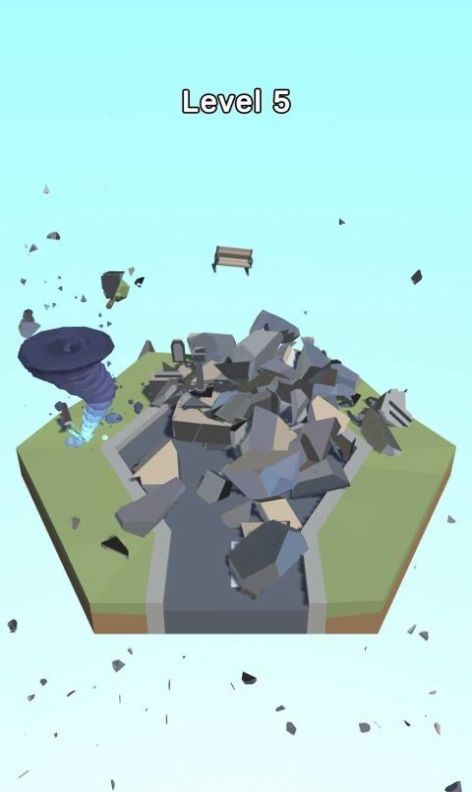 龙卷风越强大摧毁的建筑也会更大,只要你的破坏力足够就可以瞬间摧毁真正的高楼大厦;通过收集能量道具,你的龙卷风可以进化出更惊人的破坏范围。