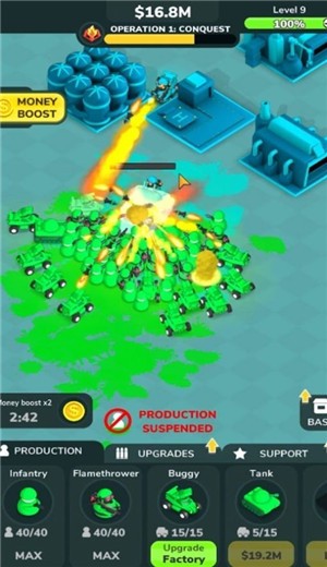 游戏最大的特色在于将射击对战与策略塔防完美结合,为玩家带来双重乐趣。在射击战斗方面,游戏提供了多种操作模式,包括自动瞄准和手动瞄准,让不同水平的玩家都能找到适合自己的玩法。玩家需要通过精准的射击来消灭敌人,同时还要注意收集战场上的资源。在策略方面,游戏设计了丰富的关卡系统,每个关卡都有独特的敌人配置和地形特点,玩家需要合理部署防御工事和士兵站位,才能有效抵御敌人的进攻。随着游戏进程的推进,玩家可以解锁更多强力武器和特殊技能,这些都将帮助玩家应对越来越强大的敌人。