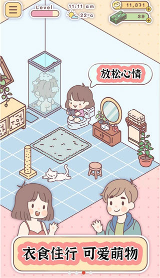 下载并打开游戏后,首先为自己、恋人和宠物设计独特的形象,开启你们的温馨之旅。进入游戏后,摆放初始家具,但为了打造更完美的家,别忘了去商店挑选更多心仪的家具。在商店中,你可以根据自己的喜好自由选购,打造个性化的居住空间。当宠物加入你们的生活后,记得细心照顾它,培养深厚的感情。如果一时不知道下一步该做什么,可以查看任务列表,规划接下来的行动,让游戏体验更加充实。