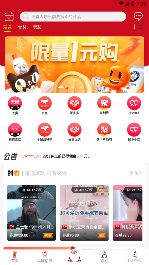 每日精选1分购、9.9包邮专场,低价好物的同时还包邮,每日大转盘抽奖各种惊喜在等你!这些超值活动让您既能省钱又能享受购物的乐趣。