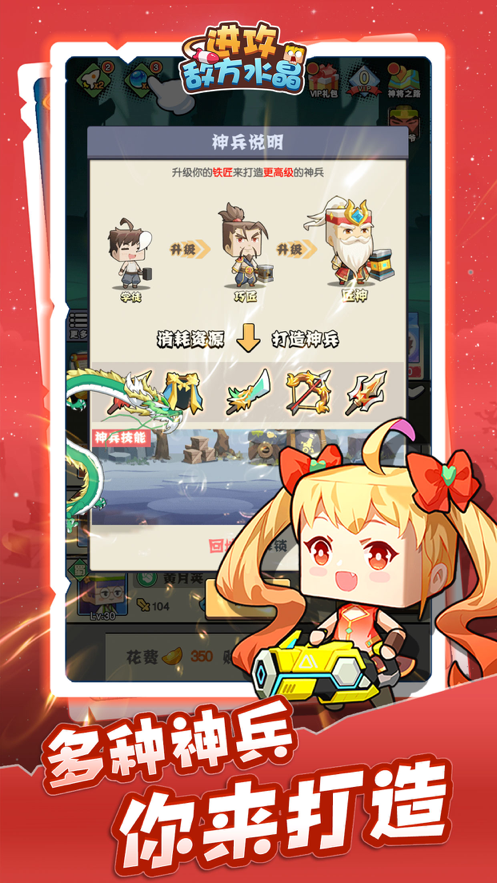 进攻敌方水晶官方正版是一款极具策略性与趣味性的三国题材塔防手游!在这款游戏中,玩家将化身三国时期的军事指挥官,通过精心部署军队、合理调配武将,展开一场场惊心动魄的领土争夺战。游戏完美还原了三国时期的经典战役场景,无论是赤壁之战的烈焰滔天,还是官渡之战的铁骑冲锋,都能让你身临其境地感受古代战场的恢弘气势。每一次排兵布阵都需要深思熟虑,武将之间的技能搭配、兵种相克关系都将直接影响战局走向。只有充分发挥每位武将的独特优势,才能在这场智慧与勇气的较量中脱颖而出!