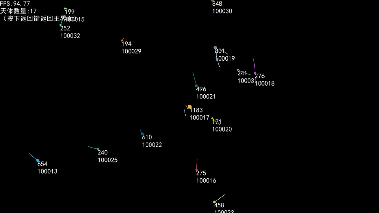 《模拟天体》作为一款专业的宇宙模拟器,拥有多项令人惊艳的特色功能。游戏采用先进的物理引擎,可以同时模拟多达200个天体的复杂运动轨迹。玩家只需简单设置质量、速度、轨道等参数,就能立即观察到天体系统的演化过程。特别值得一提的是,游戏中的每个天体都拥有独立的物理特性,包括引力场、自转速度、大气组成等,这些参数都会真实影响天体的运动状态。游戏还特别设计了"命运观测"模式,在这个模式下,玩家可以创建自己的微型宇宙,然后加速时间流逝,观察这些天体最终的归宿,这种独特的玩法既富有教育意义又充满趣味性。