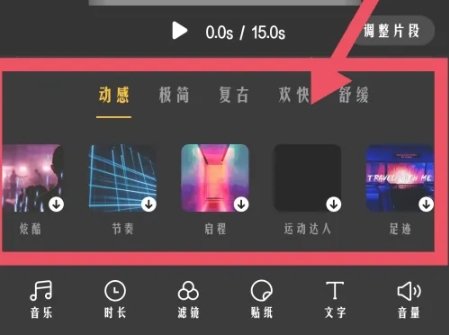 在音乐处理方面,即录剪辑提供了便捷的音乐导入功能。用户只需进入自由剪辑模式,导入视频素材后,点击音乐选项,就能轻松添加自己喜欢的背景音乐。软件支持从本地音乐库导入,也可以使用内置的丰富音乐资源,让你的视频更具感染力。