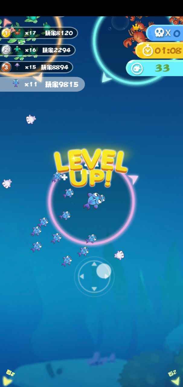 贪吃鱼大作战带你进入一个既美丽又残酷的深海世界。在这里,适者生存是唯一的法则,你需要通过不断吞噬其他鱼类来壮大自己,最终成为深海的霸主。游戏中的海洋环境栩栩如生,色彩斑斓的珊瑚、灵活游动的章鱼、随波飘摇的海藻以及形态各异的岩石,共同构成了一个梦幻般的海底世界。每一次下潜都是一次全新的冒险,赶快加入这场深海之旅吧!