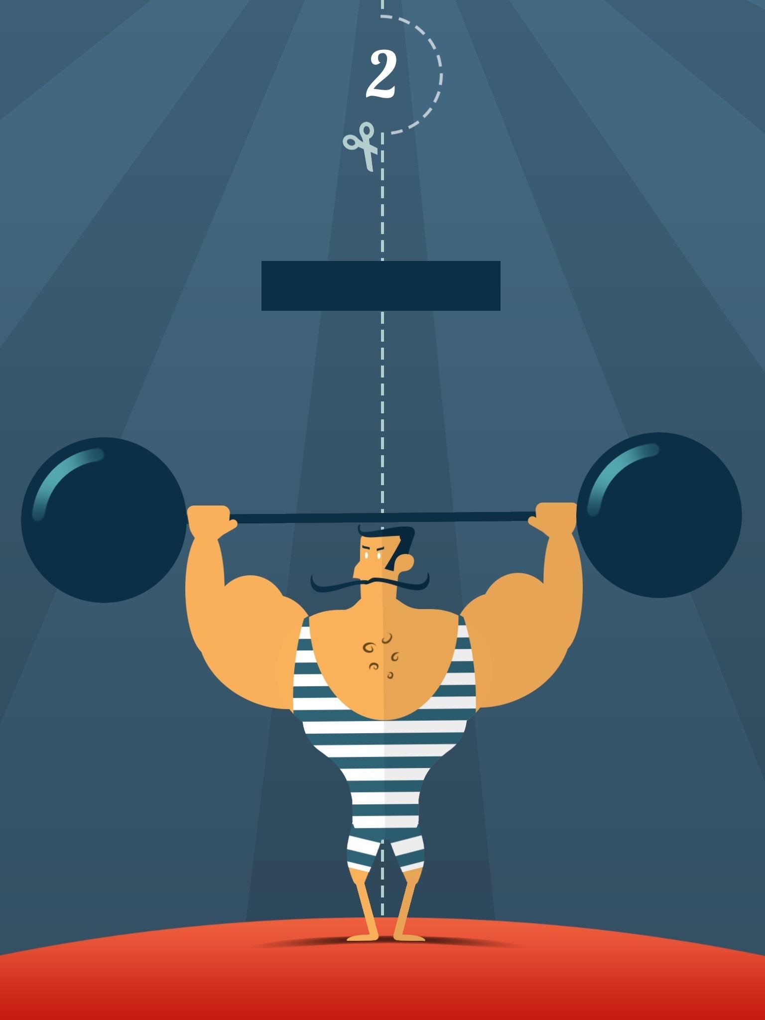 切割后的铁块会分别增加到哑铃两端,如果玩家能够做到完美对称切割,就能让举重选手保持平衡继续挑战。