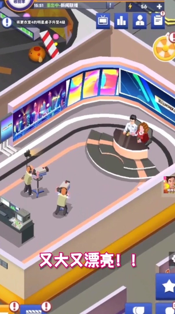 玩家在开放式的卡通地图上可以自由选址建立电视台总部,通过模块化扩建逐步打造包含演播厅、制作中心、卫星天线等设施的传媒综合体。游戏采用渐进式难度设计,初期只需管理单个频道,后期将涉及多频道协同、流媒体平台运营等复杂业务。