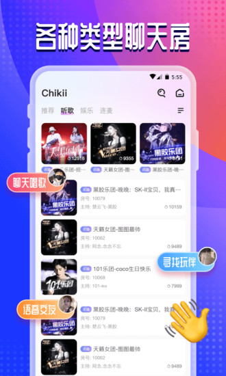 Chikii语音是一款专注于声音社交的线上交友App,致力于为用户打造轻松愉快的社交环境。在这里,你可以遇见来自五湖四海的朋友,与颜值出众的小姐姐、阳光帅气的小哥哥们畅聊人生。平台提供多种互动方式,包括语音聊天、游戏互动等,让你在轻松的氛围中建立真挚的社交关系。