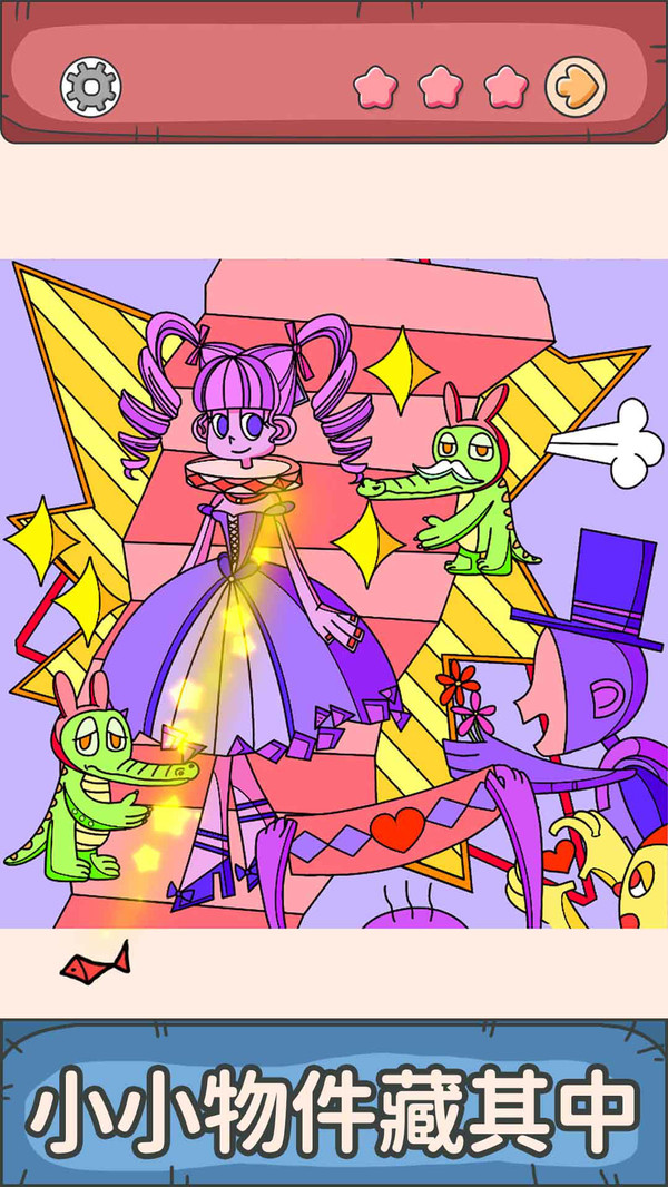 一起找找找是一款充满趣味性和挑战性的益智休闲游戏,以其独特的魔性漫画风格和丰富的玩法吸引了大量玩家。游戏的核心玩法是通过找茬寻物的方式,在精心设计的画面中寻找指定的物品或发现图片之间的差异。随着找到的物品数量增加,玩家在关卡中的评分也会相应提升,从而获得更多星星奖励。值得一提的是,游戏没有时间限制,让玩家可以轻松自在地享受探索的乐趣,即使误点击也不会受到惩罚,大大降低了游戏的压力感。