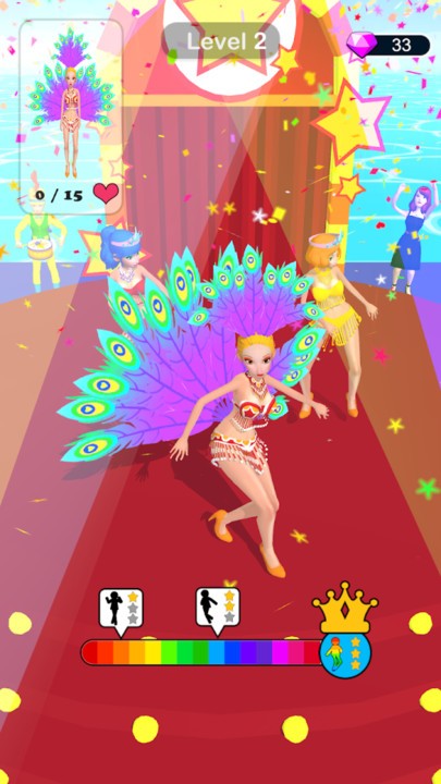 丰富多彩的桑巴舞可以学习,游戏收录了数十种经典桑巴舞步,将更多的挑战全部完成感受桑巴舞的快乐。成为最好看的桑巴舞者,你应该避免不合适的服装或奇怪的外套,系统会根据你的搭配给出时尚评分。你不应该打路上的人或者你会失去一些羽毛或服装,这些珍贵的道具需要你小心保护。游戏还特别设计了拍照模式,让你随时记录下最精彩的舞姿。