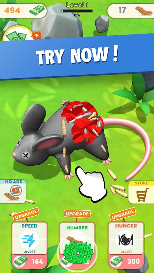 游戏中的生物种类也非常丰富,除了常见的丧尸尸体外,还有各种奇特的变异生物等待你去分解。你可以利用蛆虫、甲虫等不同类型的虫子,针对不同的尸体制定专属的吞噬方案。这种高度自由的玩法让你能够充分发挥想象力,打造出属于自己的独特军团。无论是喜欢策略规划还是追求快速通关的玩家,都能在这里找到属于自己的乐趣。