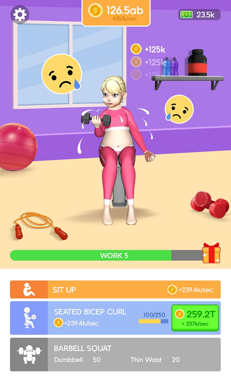 闲置锻炼身体竞赛是一款充满趣味性的健身模拟游戏,它将现实中的健身场景完美复刻到虚拟世界中,让玩家在轻松愉快的氛围中体验健身的乐趣。在这款游戏中,玩家可以自由选择自己喜欢的健身器材和运动装备,从专业的跑步机到多功能训练器,从时尚的运动服到专业的健身护具,应有尽有。通过坚持不懈的锻炼,玩家将亲眼见证自己角色的蜕变过程,从最初的肥胖状态逐渐变得苗条健康,人鱼线、马甲线等完美身材特征都会一一呈现,而那些令人烦恼的小肚子和小赘肉也会随之消失。