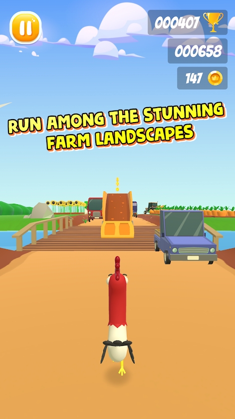 在这款永无止境的跑酷游戏中,你的每次挑战都是在创造新的纪录。游戏操作简单直观,只需通过滑动屏幕即可控制大公鸡左右移动和跳跃。但要小心赛道两边的机关陷阱,一旦触碰就会导致游戏失败,因此必须保持高度专注和快速反应。通过不断闯关,你可以获得金币奖励,用来解锁更多有趣的角色形象和炫酷装扮,让你的大公鸡更加与众不同。