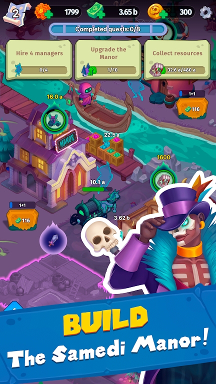 游戏支持完全离线运行,无需网络连接即可畅玩,让你随时随地都能经营自己的不死族产业。在这个神秘的Samedi世界中,你将体验到独特的亡灵生态:饲养吸血鬼、培育骷髅、收集暗黑资源,打造一条完整的产业链。游戏提供了丰富的宝箱系统和多层次的升级路线,让你的庄园发展充满无限可能。精美的哥特式画风和细腻的场景设计,将为你带来沉浸式的暗黑童话体验。
