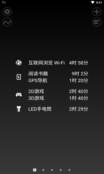 显示通话、音乐、视频、飞行、上网状态下的电池可用时间,帮助用户合理安排使用计划。