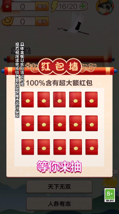 100大最吸引人的特色之一就是丰厚的红包奖励机制。游戏采用欢乐精彩的红包闯关模式,精美的游戏画风搭配惊喜不断的奖励系统,让玩家在享受游戏乐趣的同时还能获得实实在在的收益。简单易上手的操作方式让您能轻松沉浸在成语世界中,体验新颖独特的玩法模式。通过完成不同类型的挑战任务,您可以收获各种红包奖励,这些奖励可以直接提现,让知识变现成为可能。现在就加入100大,开启您的成语致富之路吧!