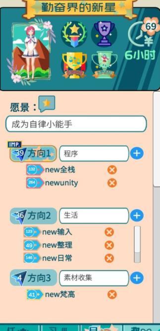 大家可以记住自己的愿景,等到时间后再看看有没有完成。游戏特别设计了任务分类系统,可以将任务按紧急程度和重要程度进行区分,帮助玩家更好地规划时间。每日任务完成后还会生成详细的数据统计,让进步看得见摸得着。