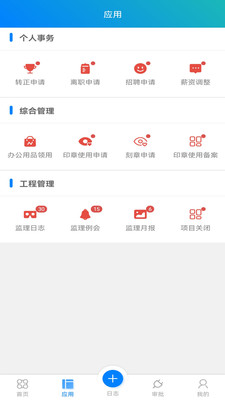 佑鸿利APP采用模块化设计理念,主要包含三大核心功能板块。综合管理模块不仅支持办公用品申领、印章使用等常规行政事务处理,还能实现完整的用章备案追溯体系,确保企业资产使用合规透明。个人事务模块深度整合人力资源全流程,从员工入职转正到离职交接,再到薪资调整等人事业务,都能实现线上标准化操作。项目管理模块则专门针对工程监理场景,提供从日常日志记录、例会管理到项目结项的全周期管控工具,帮助用户实现工程质量的闭环管理。