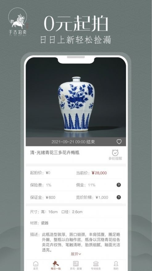 于古app是一款专注于艺术品拍卖的移动平台,汇聚了来自全球的珍贵艺术品和收藏品。在这里,您可以发现从古典油画到现代雕塑的丰富藏品,每一件商品都经过专业鉴定团队的多重认证,确保真伪无忧。平台采用透明竞拍机制,让艺术爱好者能够以公平公正的方式参与竞标,无论是资深藏家还是初次接触拍卖的新手,都能享受到安全便捷的交易体验。同时,用户还可以自由上架个人藏品,开启属于自己的艺术拍卖之旅。