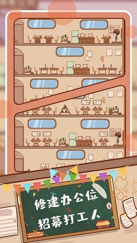 超多人物等你解锁,快来体验吧。游戏包含数十个性格各异的NPC角色,每个角色都有独特的故事线等待发掘。招收更多打工仔,建设公司,赚取收益。玩家可以组建自己的团队,通过合理分配人力资源来提升经营效率。Q版画风,非常有代入感,感受不一样的经营体验。精致的画面表现和生动的角色动画,让经营过程充满乐趣。从白手起家到富甲一方,都需要自己努力,加油吧打工人。游戏特别设计了详实的成长系统,记录玩家从职场菜鸟到商业精英的蜕变历程。