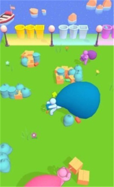 将不同颜色的垃圾使用对应的包裹袋进行打包。游戏提供了多种特殊道具,如加速手套、扩大收集范围等,合理使用这些道具可以让你在关键时刻反败为胜。