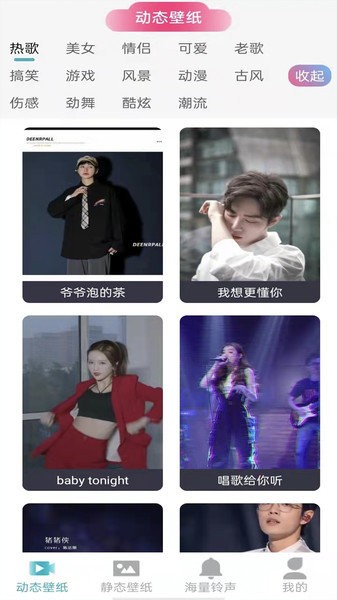 包括但不限于动态壁纸、静态壁纸、还有各种的铃声,都可以让用户进行选择;为用户提供了智能搜索的功能,可以让用户快速的找到自己感兴趣的壁纸资源;搜索栏中对于自己喜欢的铃声内容进行搜索,然后就可以十分容易的找到各种的铃声资源信息了。此外,还支持壁纸收藏、历史记录等功能,方便用户管理自己喜欢的壁纸。