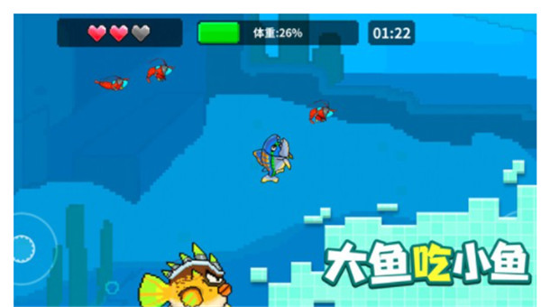通过吞噬小鱼让自己的体重与等级不断增长。游戏采用真实的物理引擎,鱼类的体型会随着吞噬而逐渐变大,同时移动速度也会相应变化。玩家需要平衡体型与敏捷性之间的关系,才能更好地在海洋中生存。