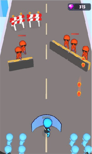 采用双摇杆操作系统,左摇杆控制角色移动,右摇杆调整盾牌防御方向。玩家需在保护身后同伴的同时,观察敌人枪口朝向预判弹道,最佳反击时机出现在敌人弹匣打空的0.5秒间隙。高级关卡中会出现持防弹盾的精英敌人,必须通过连续反弹制造破绽才能击败。每关设有三星评价系统,达成"零同伴伤亡""30秒速通"等特殊条件可解锁稀有盾牌皮肤。