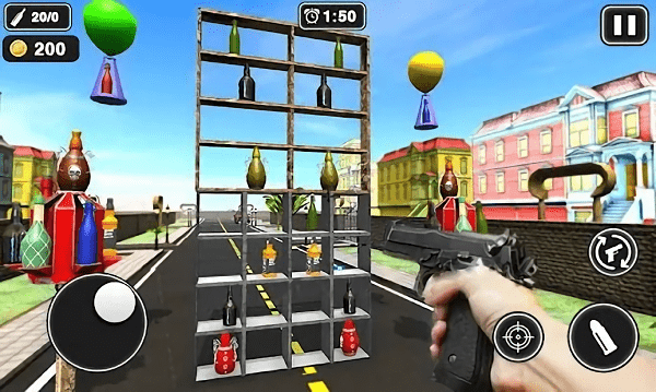 游戏最大的优势在于其多样化的挑战模式。除了常规射击外,玩家还可以尝试极具挑战性的"炸药瓶"模式,在爆炸物的威胁下完成精准射击。游戏商城提供了丰富的辅助道具,包括子弹时间、自动瞄准等特殊能力,帮助玩家应对高难度关卡。游戏操作简单易上手,但想要成为真正的神枪手仍需勤加练习。特别值得一提的是游戏的物理反馈系统,完美模拟了不同材质瓶子的破碎效果,让每次爆头射击都能获得极大的成就感。游戏还定期更新节日主题活动和限时挑战,确保玩家始终保持新鲜感。